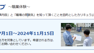 - 内容:実践的な職業体験を通じて「具体的な仕事内容」と「職場の雰囲気」を知って頂けるカリキュラム